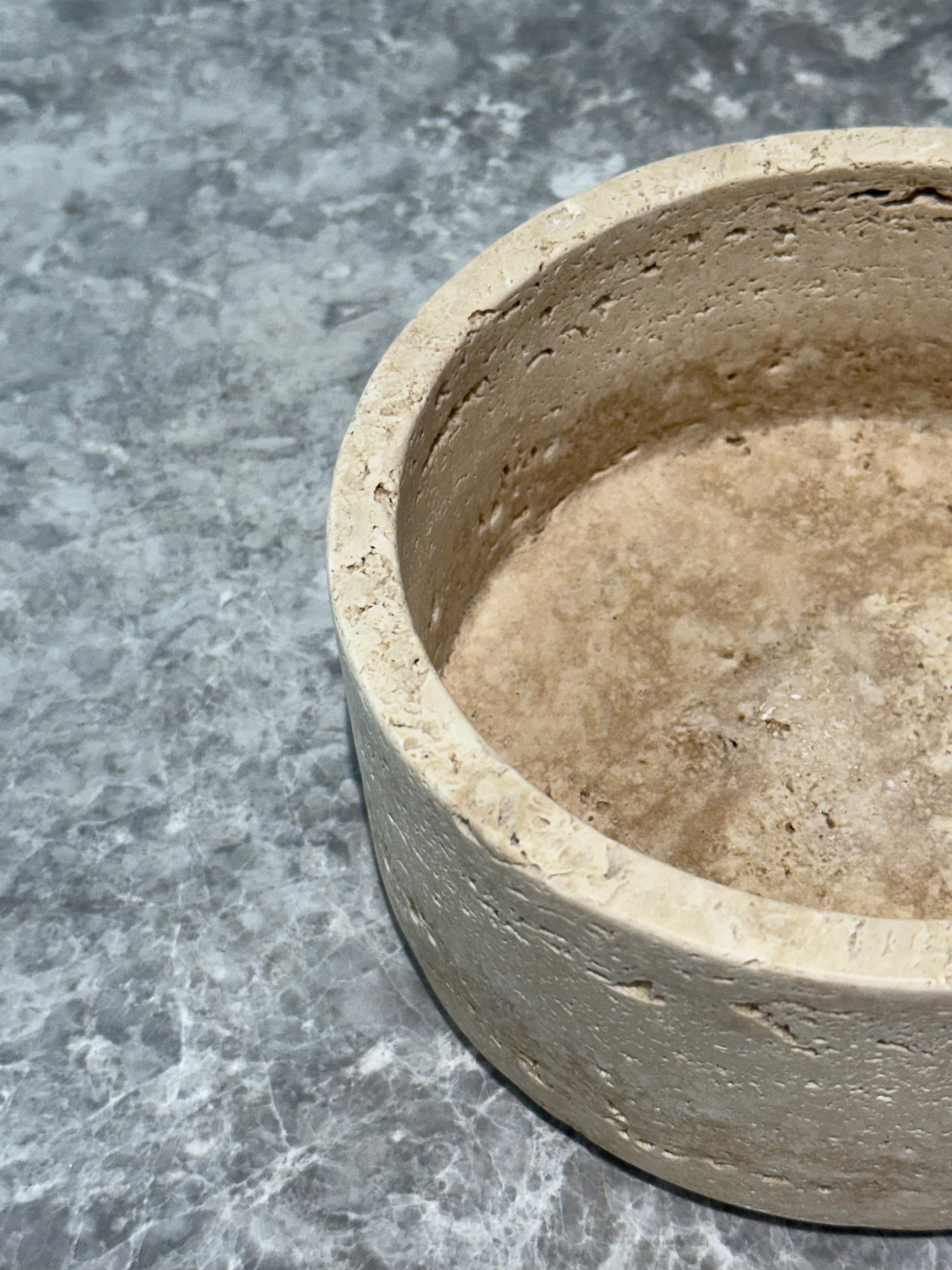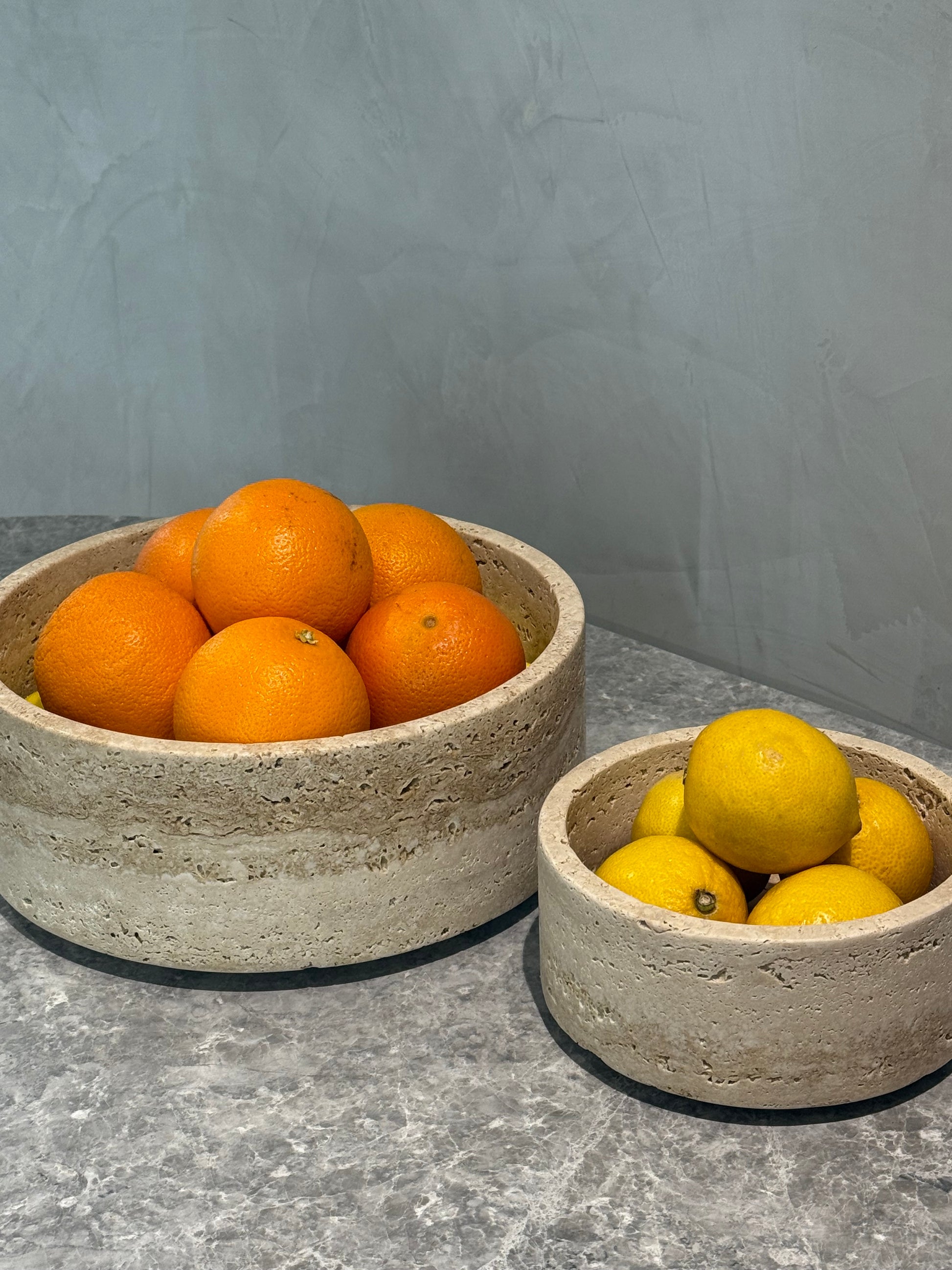 Carved from a single block of authentic Silver Italian Travertine, this substantial bowl is honed by hand to a velvety matte finish. Its clean, sculptural lines spotlight the stone’s naturally layered veining, delivering an understated statement piece that balances raw material beauty with refined craftsmanship.